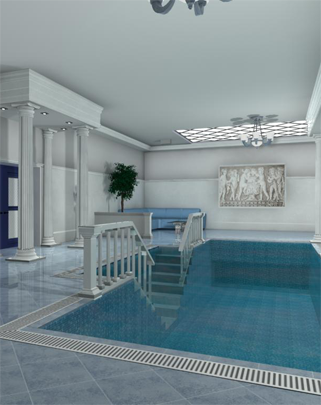 Осмотрев место строительства, проведя необходимые инженерные изыскания, определившись с возможностью устройства бассейна на объекте и основываясь на пожеланиях владельца, работа над проектной документацией начинается с подготовки в нескольких вариантах эскизов будущего бассейна с визуализацией в трехмерном пространстве. После чего, на основании совместно выбранного оптимального решения, составляется техническое задание, содержащее характеристики инженерных сетей объекта, условия эксплуатации бассейна, принадлежность бассейна к категории частного или общественного, требования к геометрическим параметрам, типу водообмена (с переливным желобом или скиммером) и составу оборудования бассейна.
